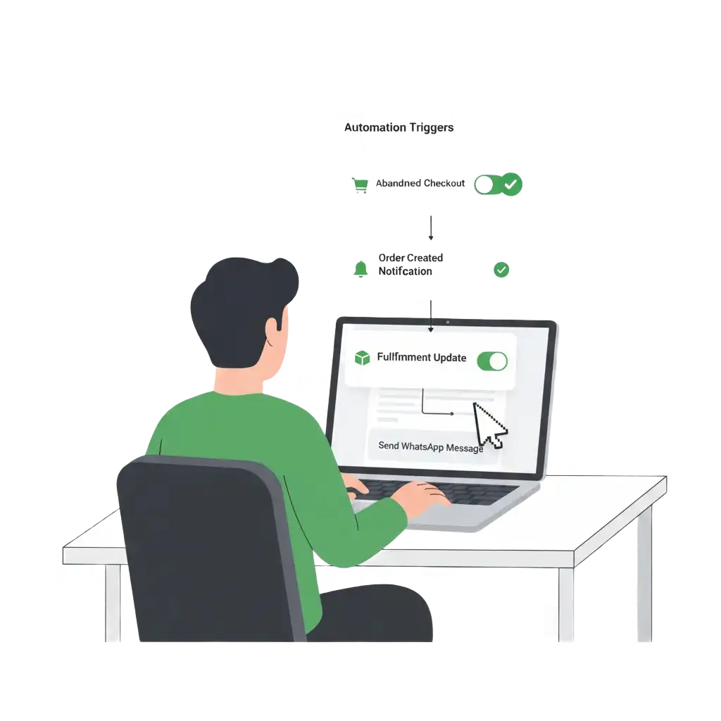 WAuto listens to Shopify store events like checkout, orders, and fulfillment, then automatically sends WhatsApp messages based on those actions.